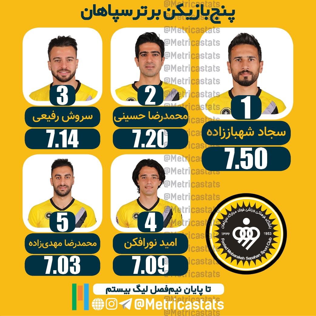 پنج بازیکن برتر سپاهان در نیمفصل اول لیگ بیستم