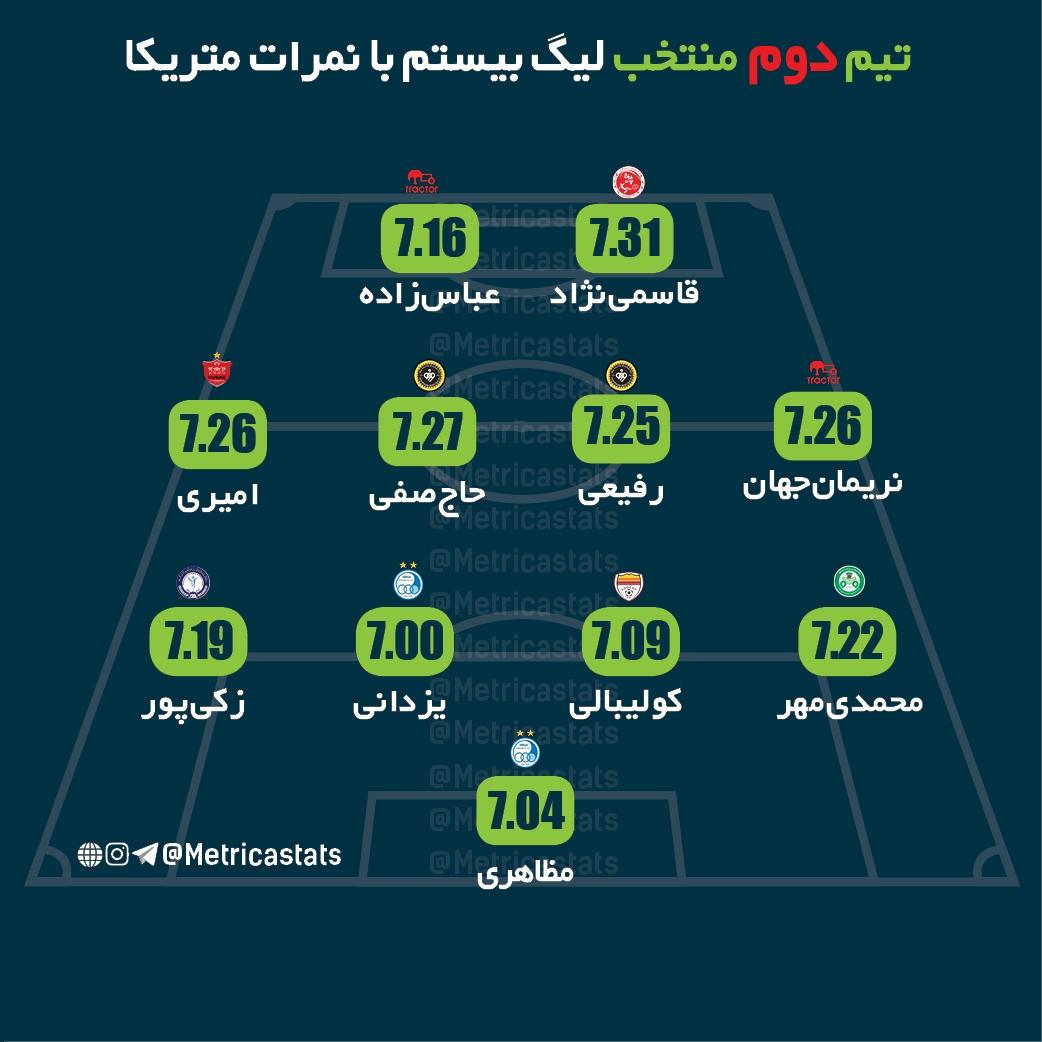وحید امیری با 3 گل، 5 پاس گل، میانگین 1.5 پاس کلیدی و بیش از یک دریبل موفق در هر بازی، نمره 7.26 را از متریکا دریافت کرد.