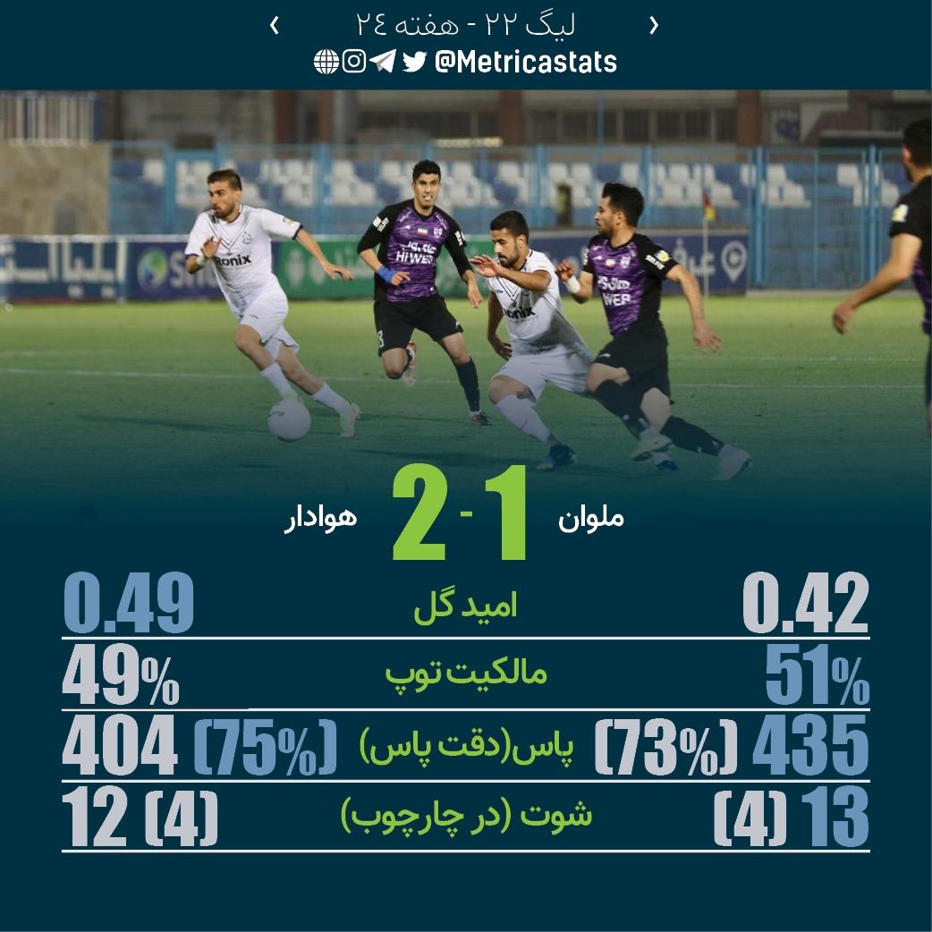 متریکا؛ مرجع آماری فوتبال ایران- کیفیت موقعیت گل دو تیم تقریباً برابر بود ولی هوادار از ملوان فرصتطلبتر نشان داد و به پیروزی رسید.